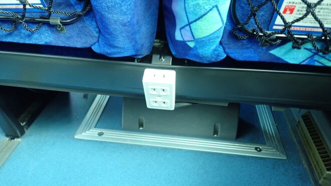 高速バスにはまさに取って付けたという表現がぴったりのコンセントが付いていました。