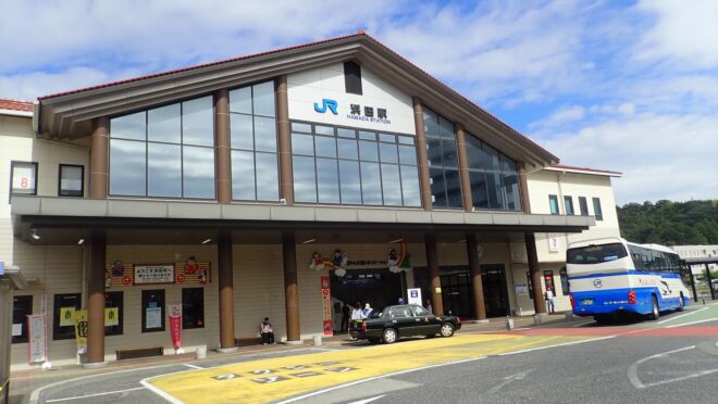 浜田の中心街を抜けて186号線が浜田バイパスの下を通過する手前辺りから建物は一気に減って周辺は寂しくなってきた。