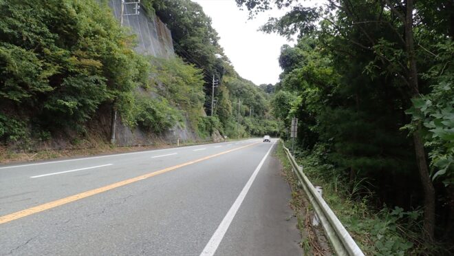 一応は申し訳程度の路側帯が存在するので大型車にだけはがっつり注意しつつ登っていく。