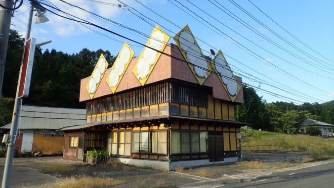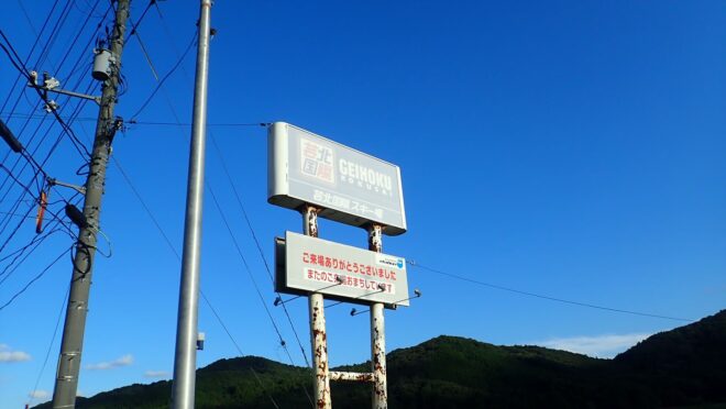 もう何年も前に潰れているのですが、案内の看板だけは複数個所に残っていました。