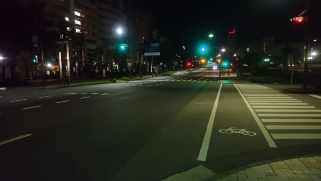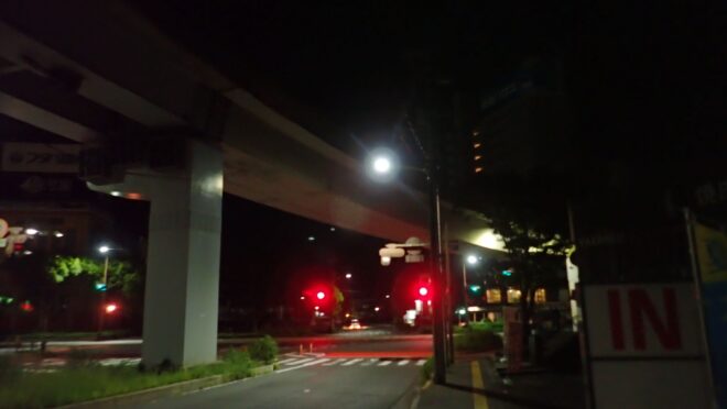 付近には大型の商業施設が多く、日中は交通量も多いですがこの時間帯は流石に閑散としていますね。