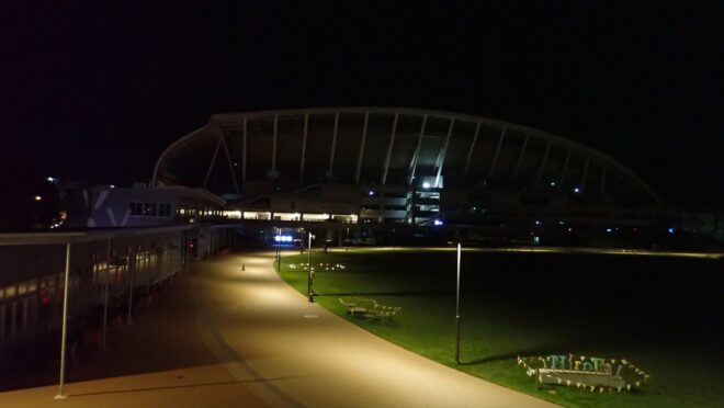 エディオンピースウイング広島からひろしまゲートパークへの道は広島市内のウォーキングイベントでたまに通りますね。