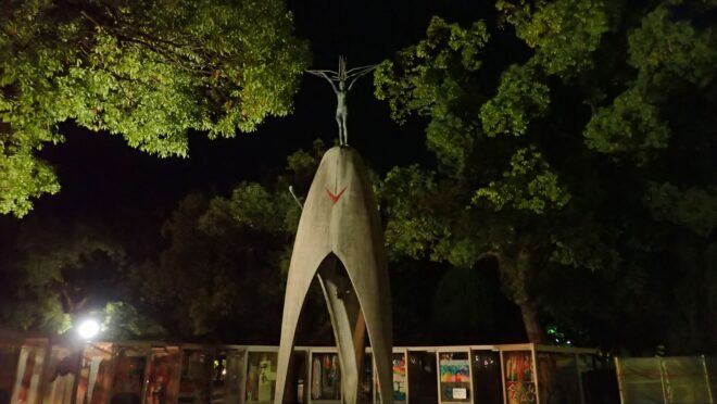 早朝の静かな空気の中で祈りを捧げたかったのですが元安川の対岸で外人数名が大声で騒いでいるので台無しでした。