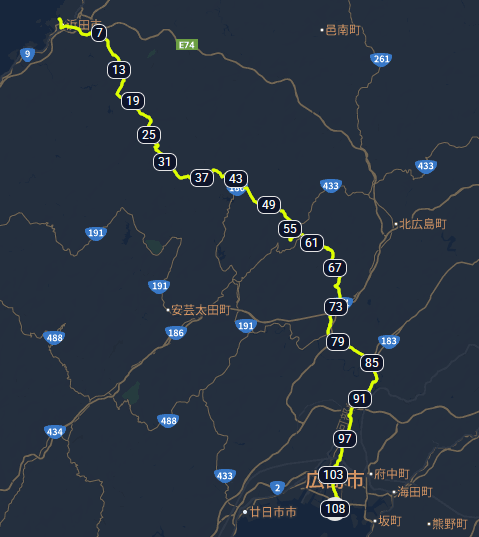 この先は広島市の経済圏に入るのでコンビニなども多数有るのですが下手に歩道が車道と分離されている関係で意外とルート上にコンビニが少ない。