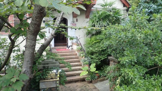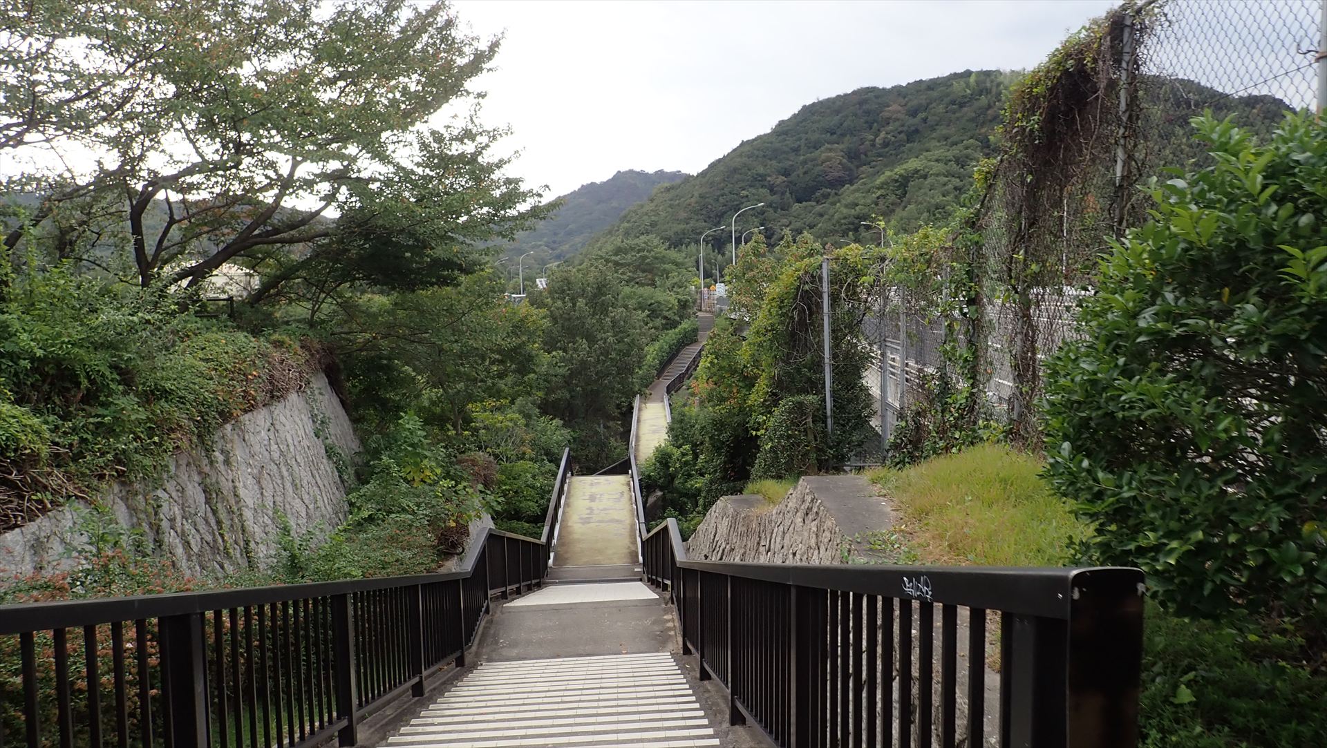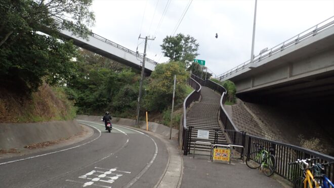 階段を上るとフラットな道になって高速道を沿いを進むようになるのですがすぐに新たな階段が有ります。