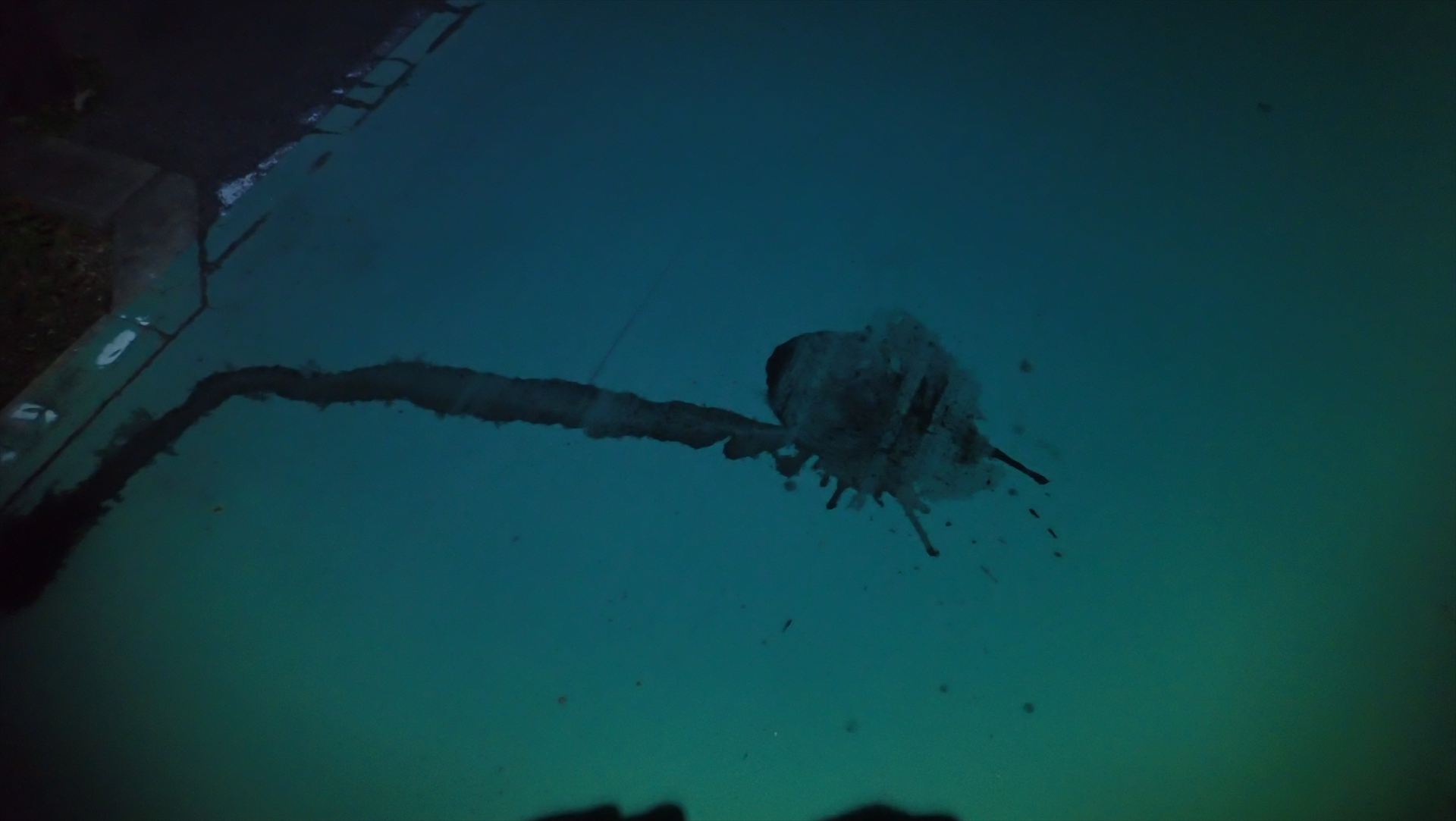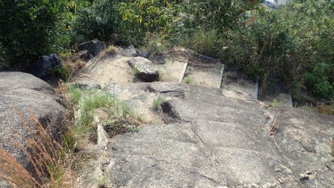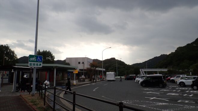 瀬戸田の街中を抜けてからはすっかり暗くなったので夜間装備を整えてから歩いているとサイクリングロードに衝撃の痕跡が!!