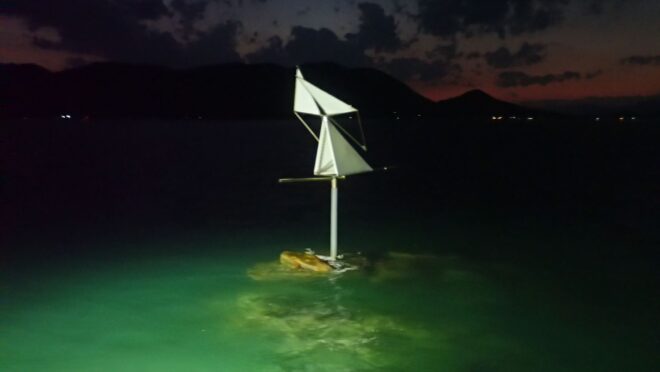 明るいうちに見るとなんじゃらほいですがライトアップされていると良い感じのオブジェですね。