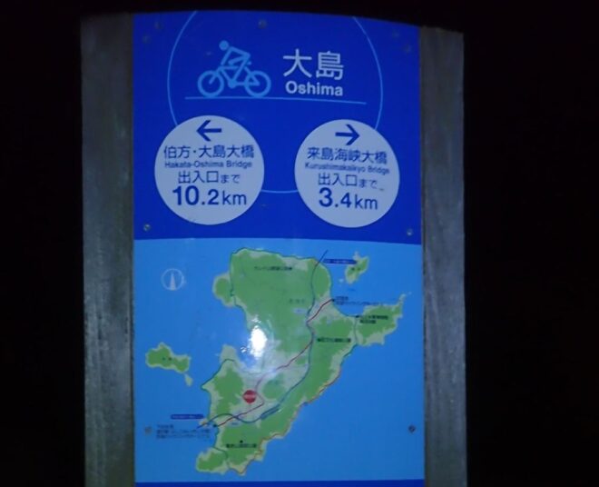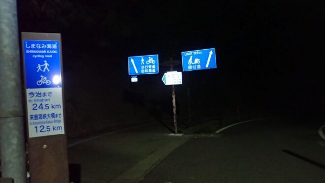 撮影した場所としては5m位しか離れていないのですが来島海峡大橋の出入り口までの距離が1.2km違う