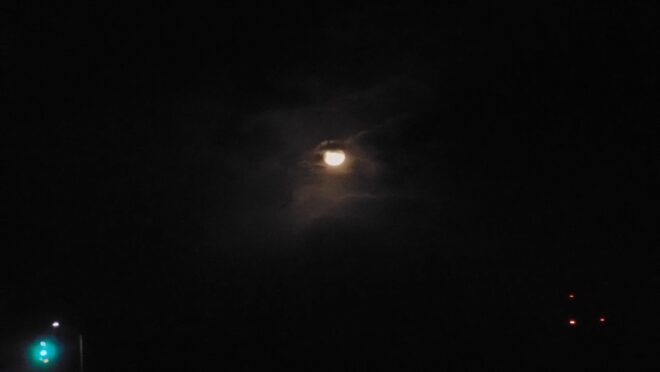 宮窪峠を超えて平坦な道に出て少し行ったくらいで撮影した月