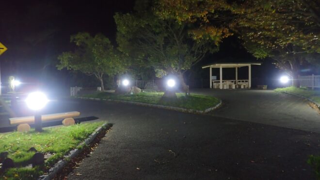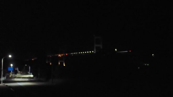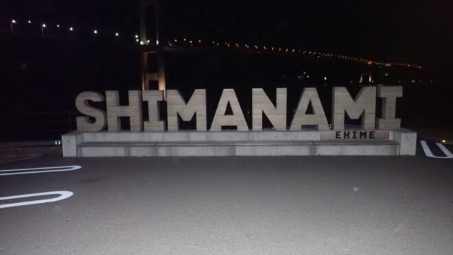 暗闇の中で来島海峡大橋とモニュメントを両方はっきり写すのはコンデジでは無理っす(^^ゞ