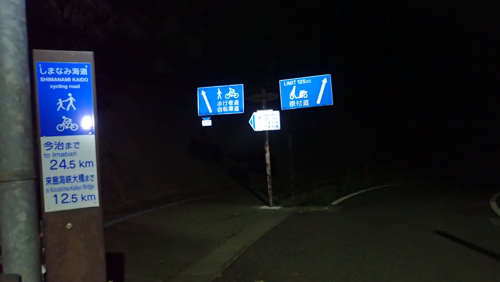 暗闇の中で来島海峡大橋とモニュメントを両方はっきり写すのはコンデジでは無理っす(^^ゞ
