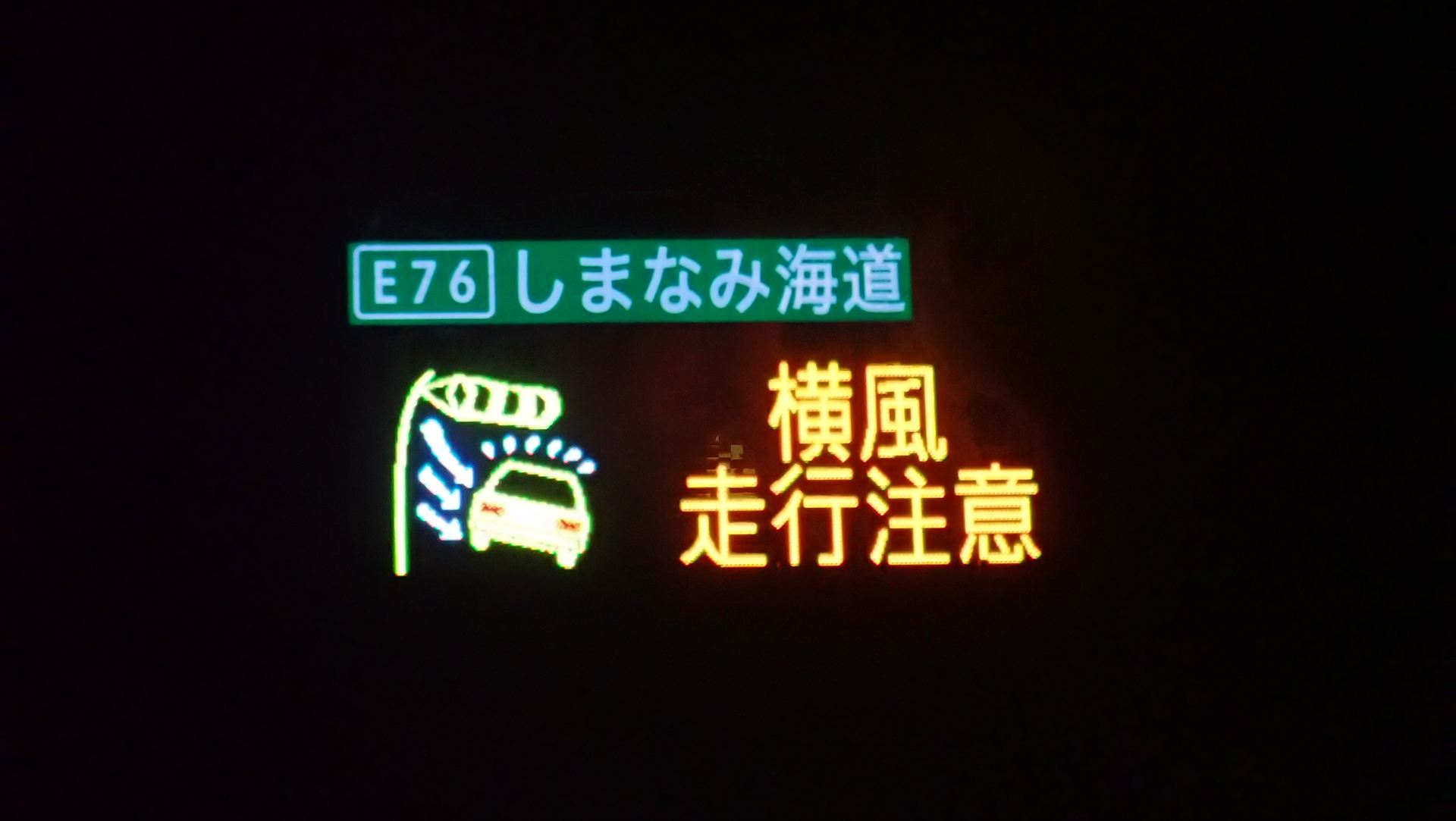 内陸部を歩いているとあまり風が無いので良く判らないけど来島海峡大橋で風が少ないのならラッキーだな