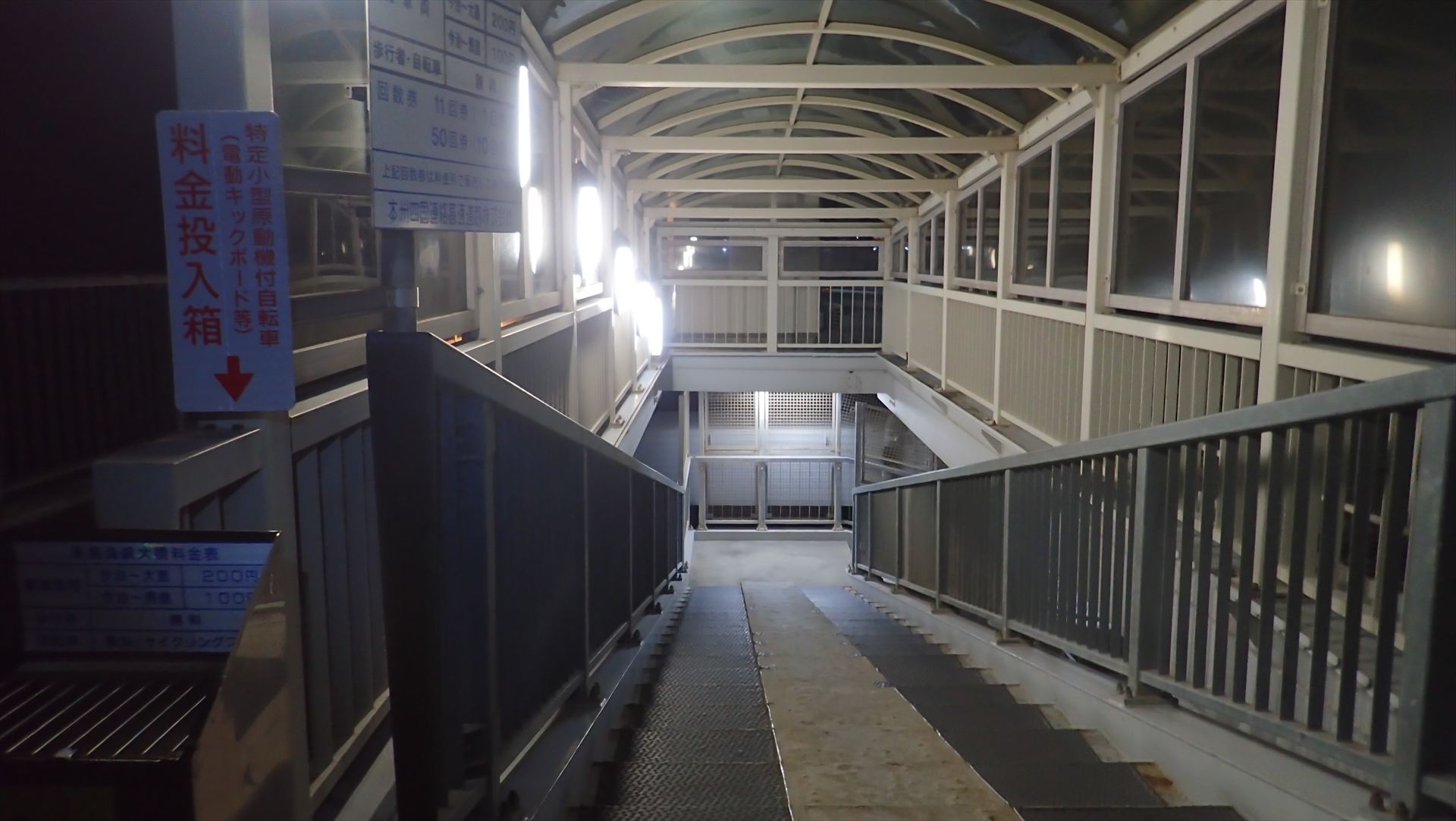 海側からの風だったのが救いでなるべく道路側を歩くけど、普通に歩いていたら風に押されて体が左のガードにぶつかるので若干右手に進路を取るようにして歩けば丁度いい。
