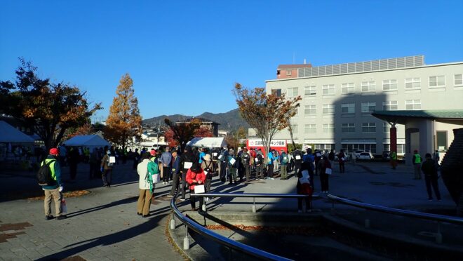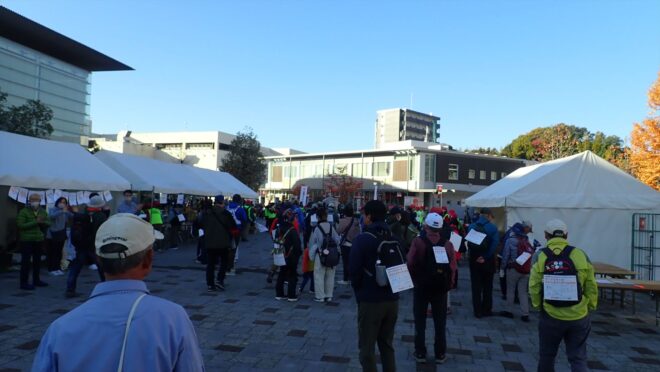 今回はがっつり時間をかけて歩くつもりだったのでほぼ最後尾に位置していたのですがスタートして暫くしても目の前のグループが動かない?