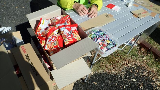 悪くは無いのですがえびせんはこの場で食べる物ではないと思うのでウォーキングイベント中の提供品としては不向きだと思う。
