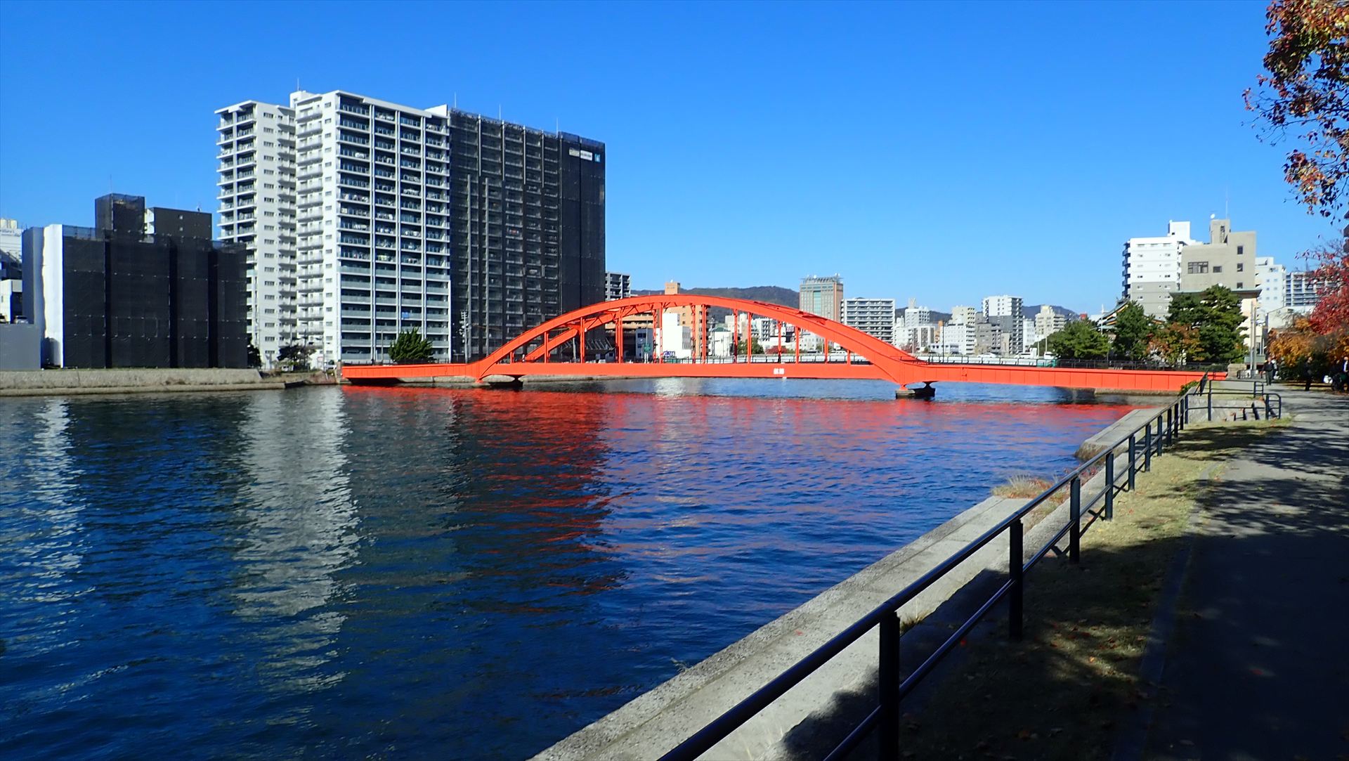 ほぼ満潮に近いのか住吉橋の下を船で通過するのは厳しそう。