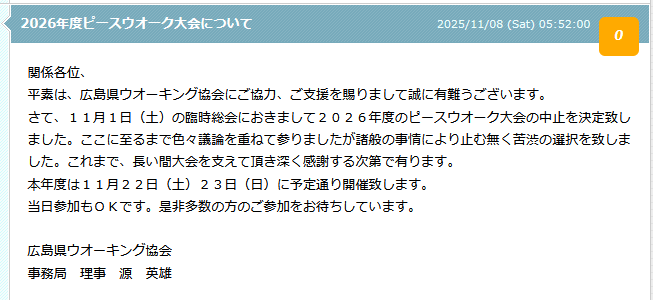 ソースは広島県ウオーキング協会の会員連絡掲示板
