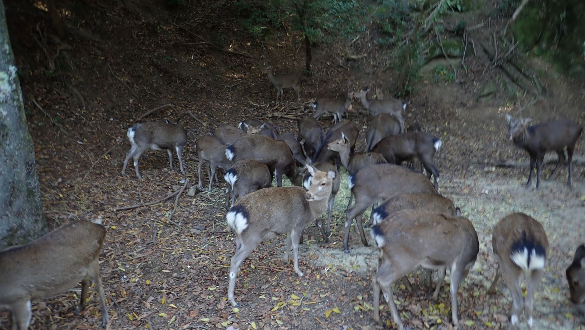 厳島の鹿への餌やりは禁止されているはずなのに明らかに人が与えたと思える草を食べている鹿を見かける。