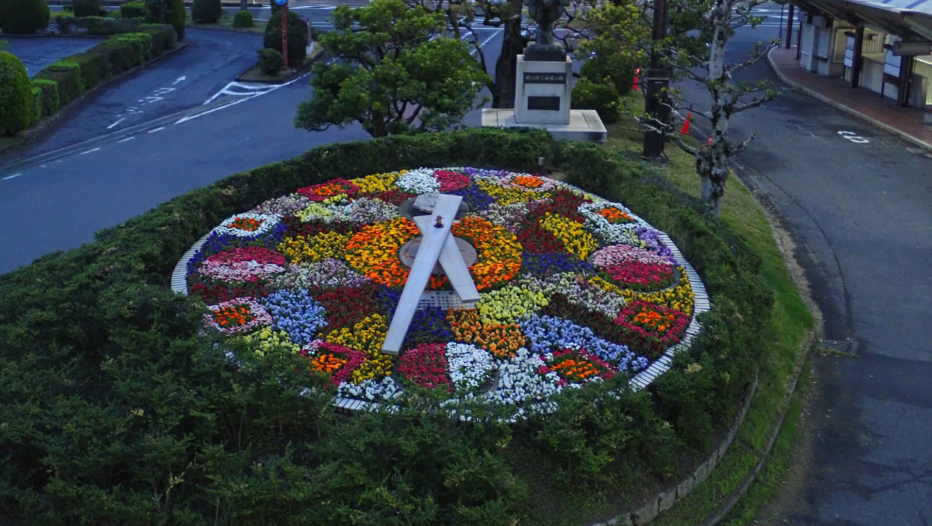 三週間前の倉敷ツーデーマーチの時に来ているのでそんなに久しぶり感は有りませんが、三週間前はまだ真っ暗だったのに今日は既に明るくなり始めていて花時計がはっきりと視認できます。