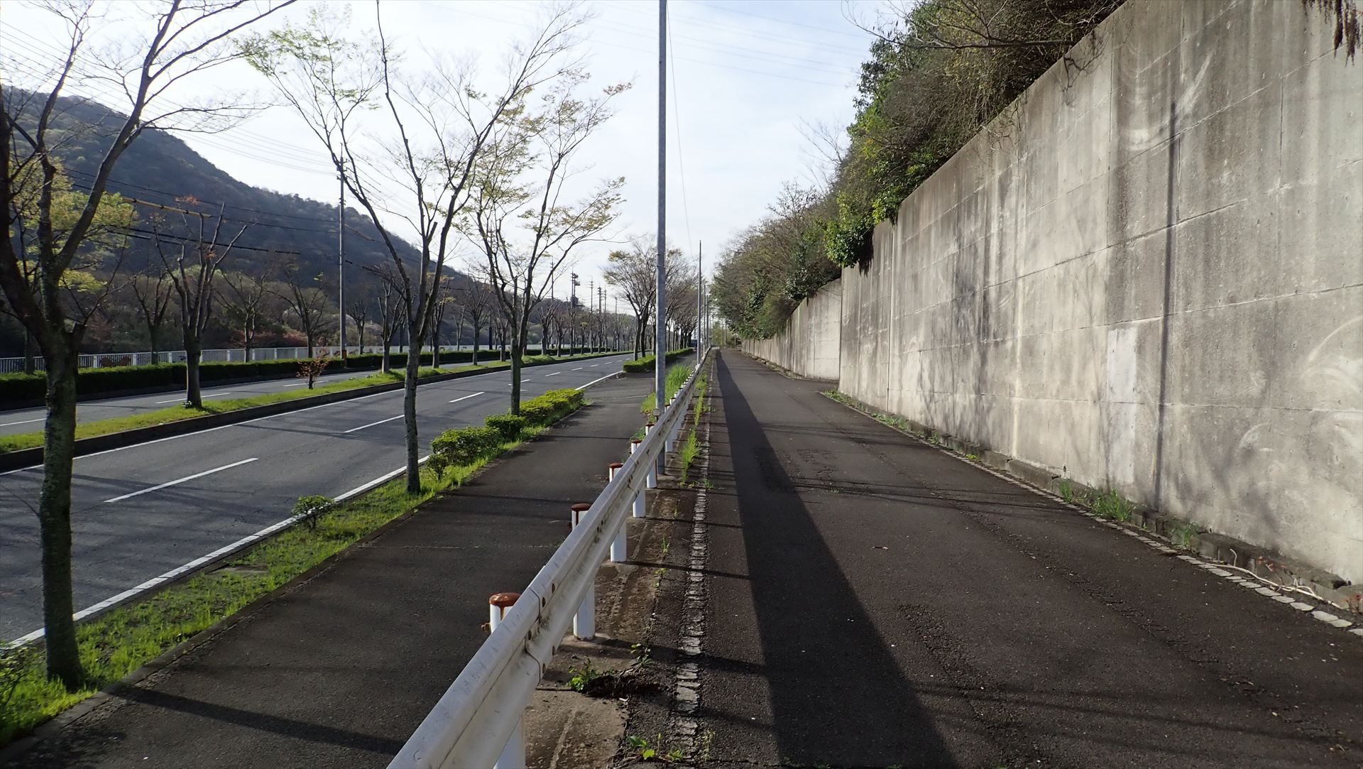 ここも歩道が広くて横にある車道と同じくらいの歩道