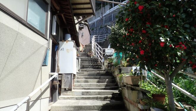 そこからは倉敷ツーデーマーチの30㎞コース時に通る「The 生活道路」的な階段を通って再び下津井電鉄廃線跡の風の道に戻る