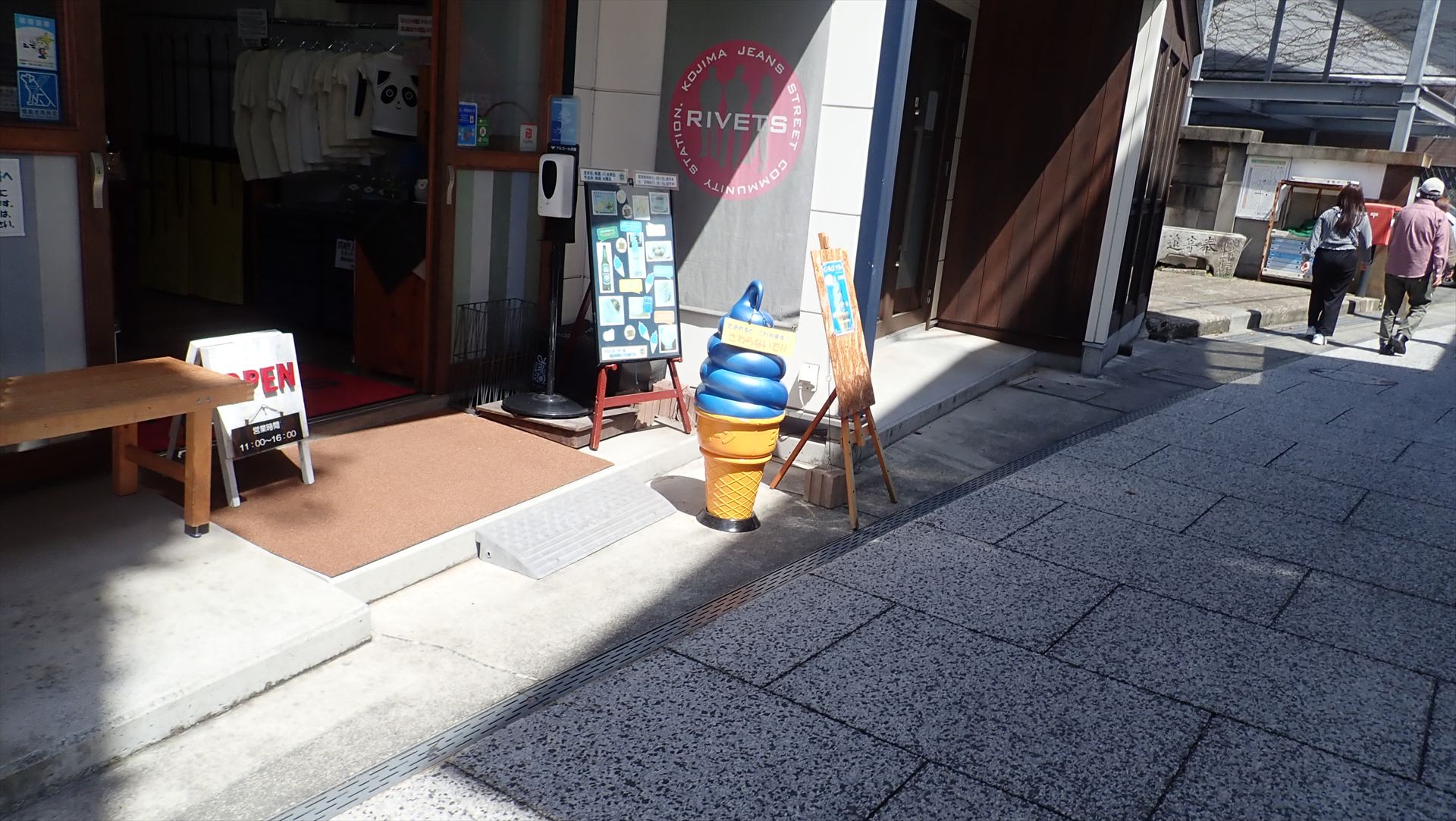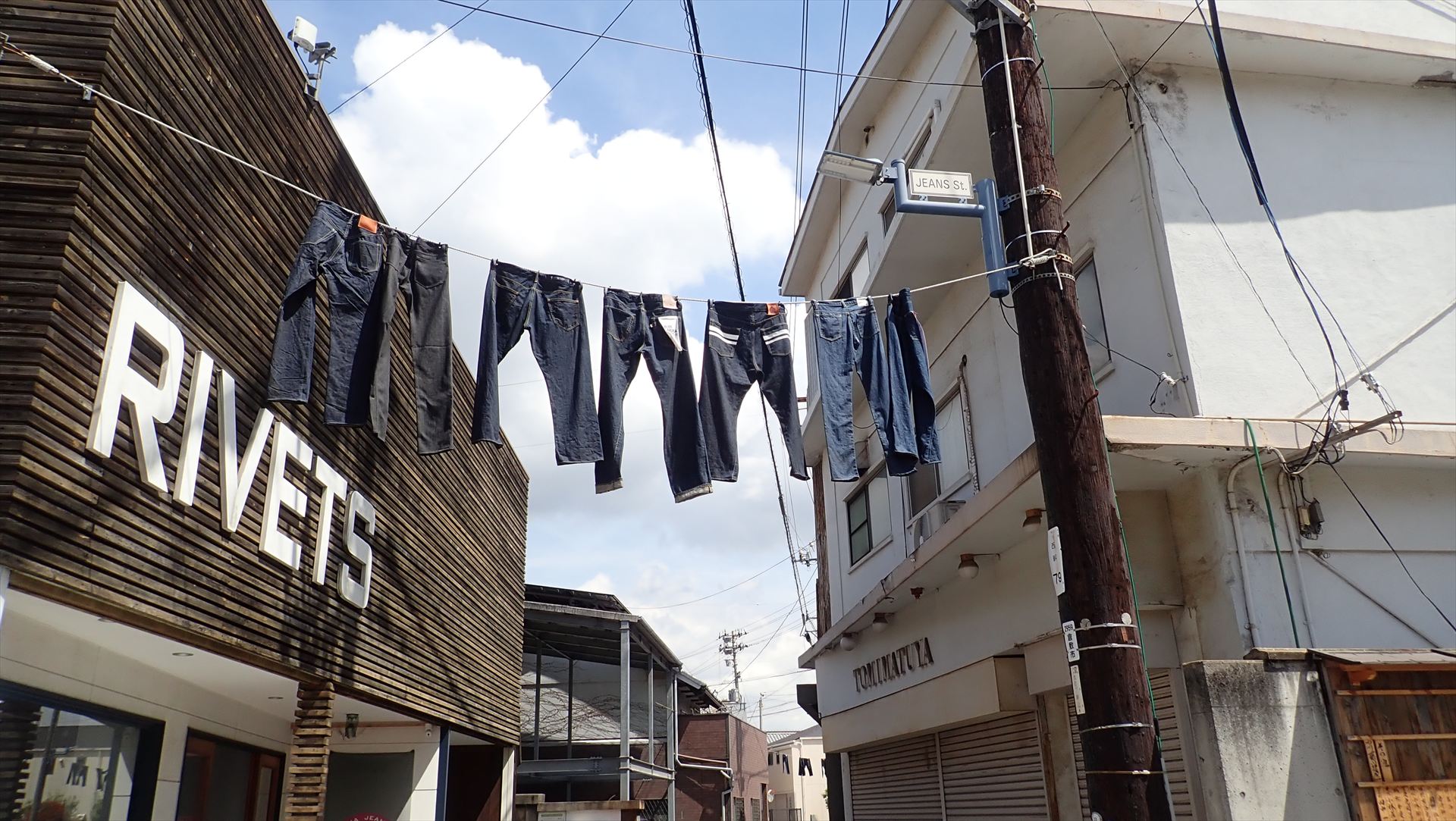 下津井電鉄廃線跡を通っている時にはコース外なのでスルーしたジーンズストリートにやって来た。
