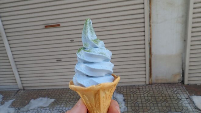 このイカしたカラーリングのソフトクリームを食べる為